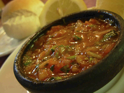 originario del Maule, el preparado de tomate machacado, cebolla, ajo, aceite y sal, nació de la faena agrícola, cuando los peones terminaban la labranza y lavaban la pala en un canal, para machacar el tomate y los demás ingredientes con una piedra. Este “cauceo” se untaba con la gran galleta latifundista.